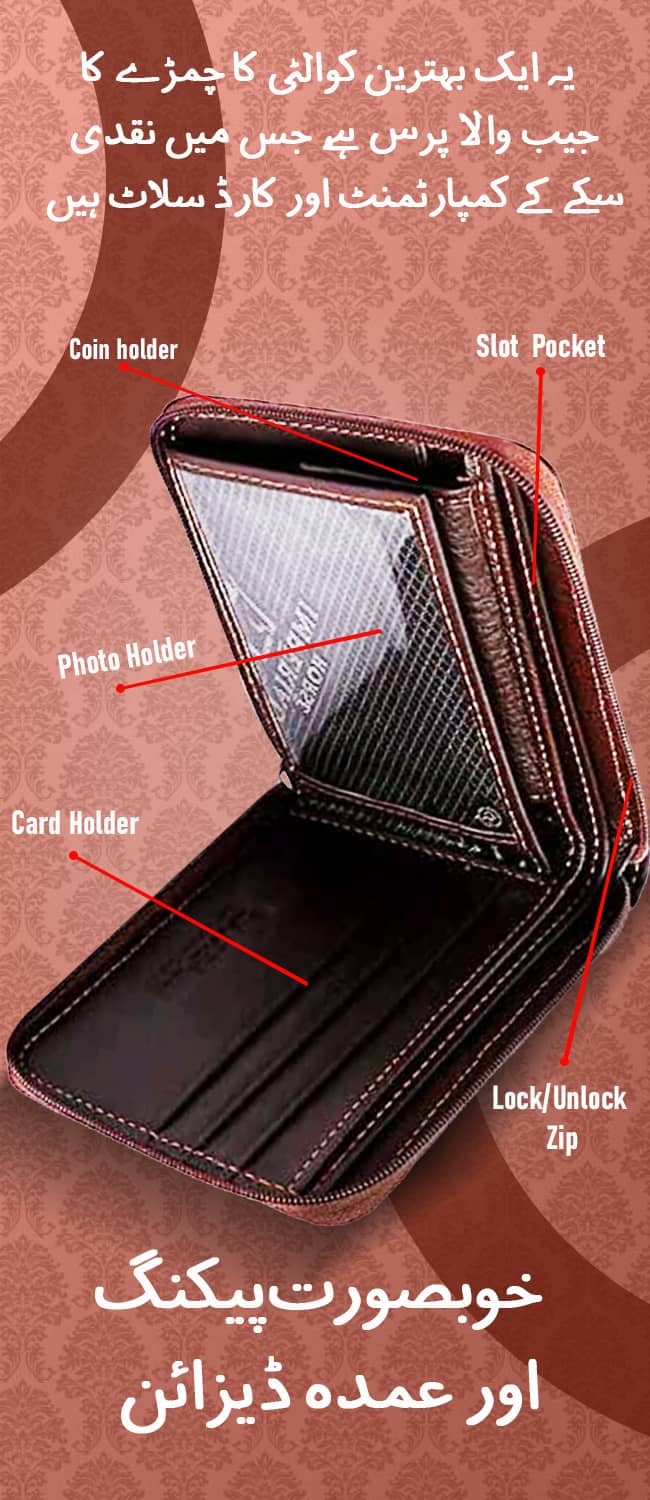 بٹوے میں بہت سی جیبیں ہیں لہذا آپ اپنے تمام کارڈز، رسید اور رقم ایک جگہ پر رکھ سکتے ہیں۔ پرس اصلی چمڑے سے بنا ہے اور اس میں چمک ہے جو اس کی قدر میں اضافہ کرتی ہے۔