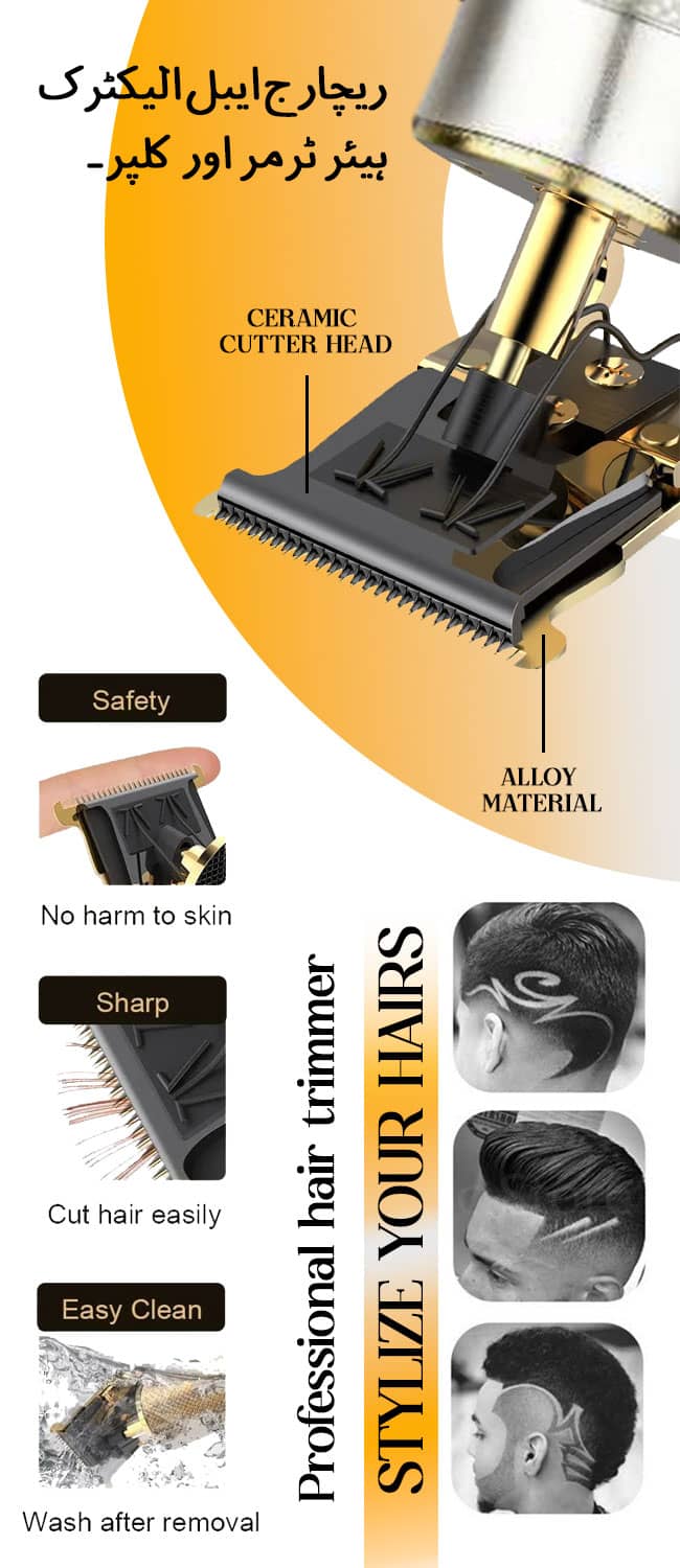 کٹر ہیڈ ٹائٹینیم سٹیل سیرامک سے بنا ہے، تیز اور اعلی کاٹنے کی کارکردگی، ٹی کے سائز کا زیرو آرا ٹوتھ، کندہ کاری پش وائٹ، جو مختلف قسم کے ہیئر اسٹائل بنا سکتا ہے۔ سپر میگنیٹ موٹر سپر ٹارک موٹر سب سے زیادہ فروخت ہونے والے کورڈ کلپرز کے مقابلے میں 2 گنا تیز کاٹنے کی کارکردگی کے لیے کٹنگ سسٹم کو زیادہ سے زیادہ طاقت فراہم کرتی ہے۔